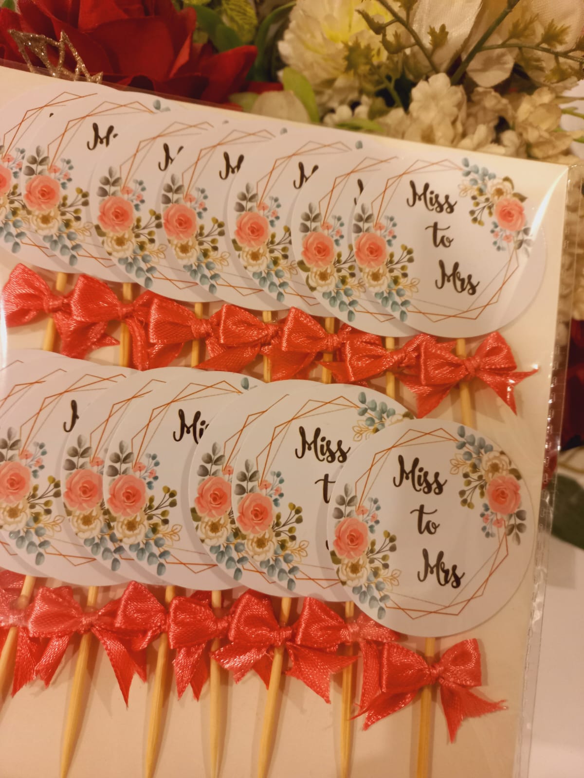 Sweet toppers perfect for adding a charming touch to bridal shower cakes.