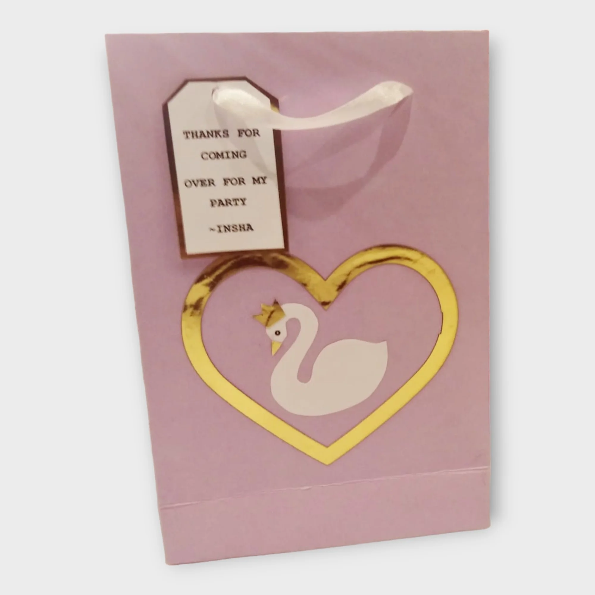 Personalized pastel shade swan-themed goodie bags perfect for elegant and graceful events.