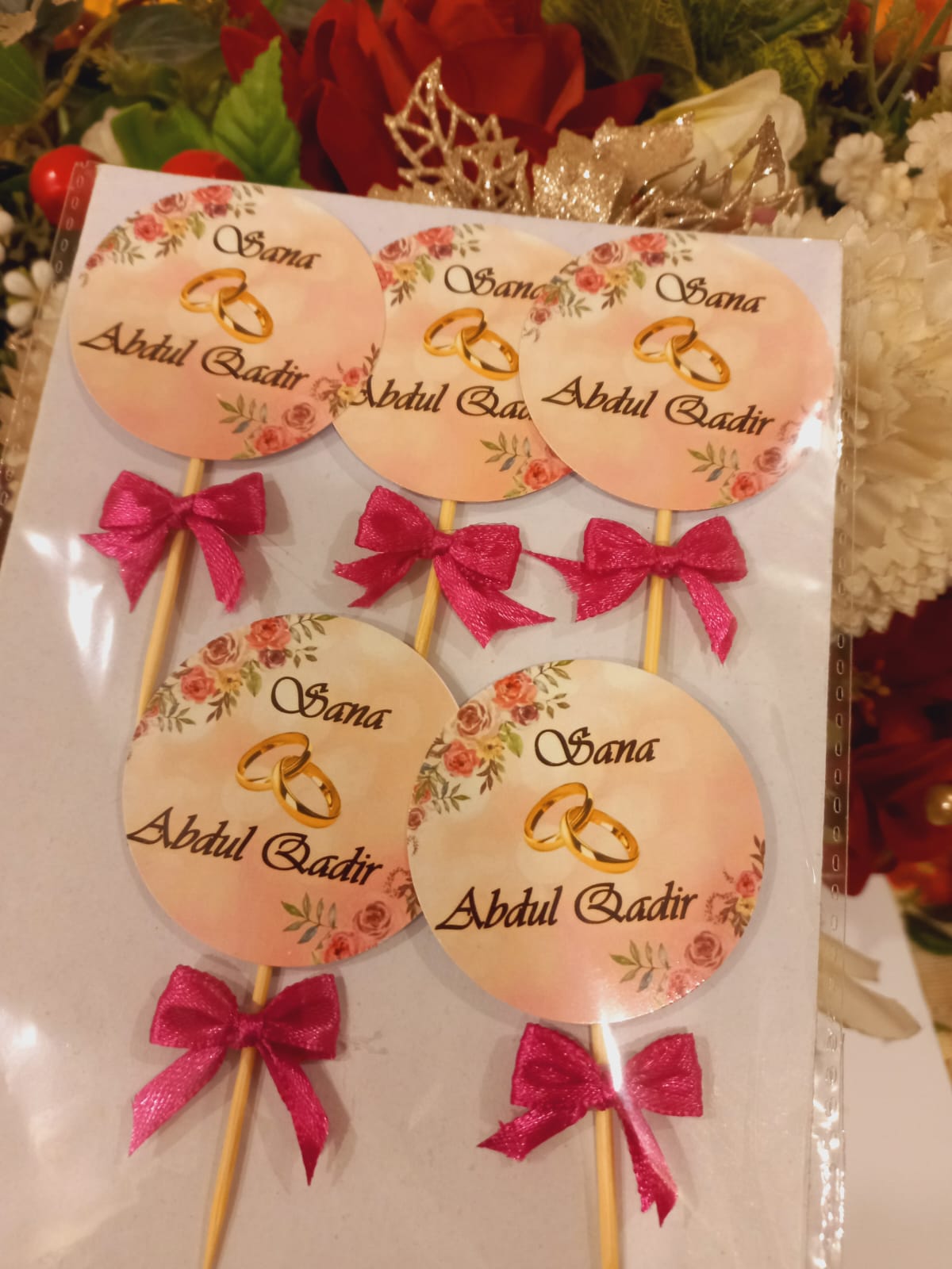 Customized floral engagement sweet topper perfect for wedding-related celebrations.