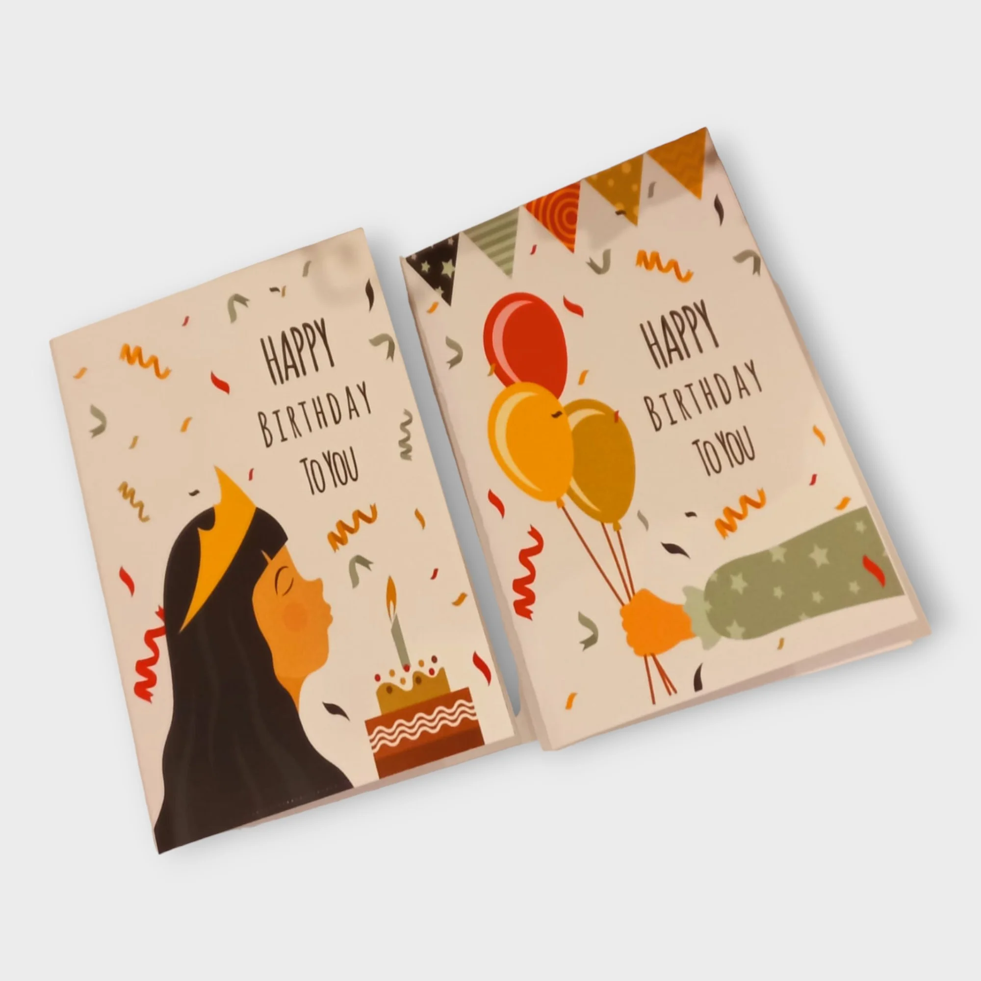 Birthday greeting cards designed to celebrate the special day with festive designs.