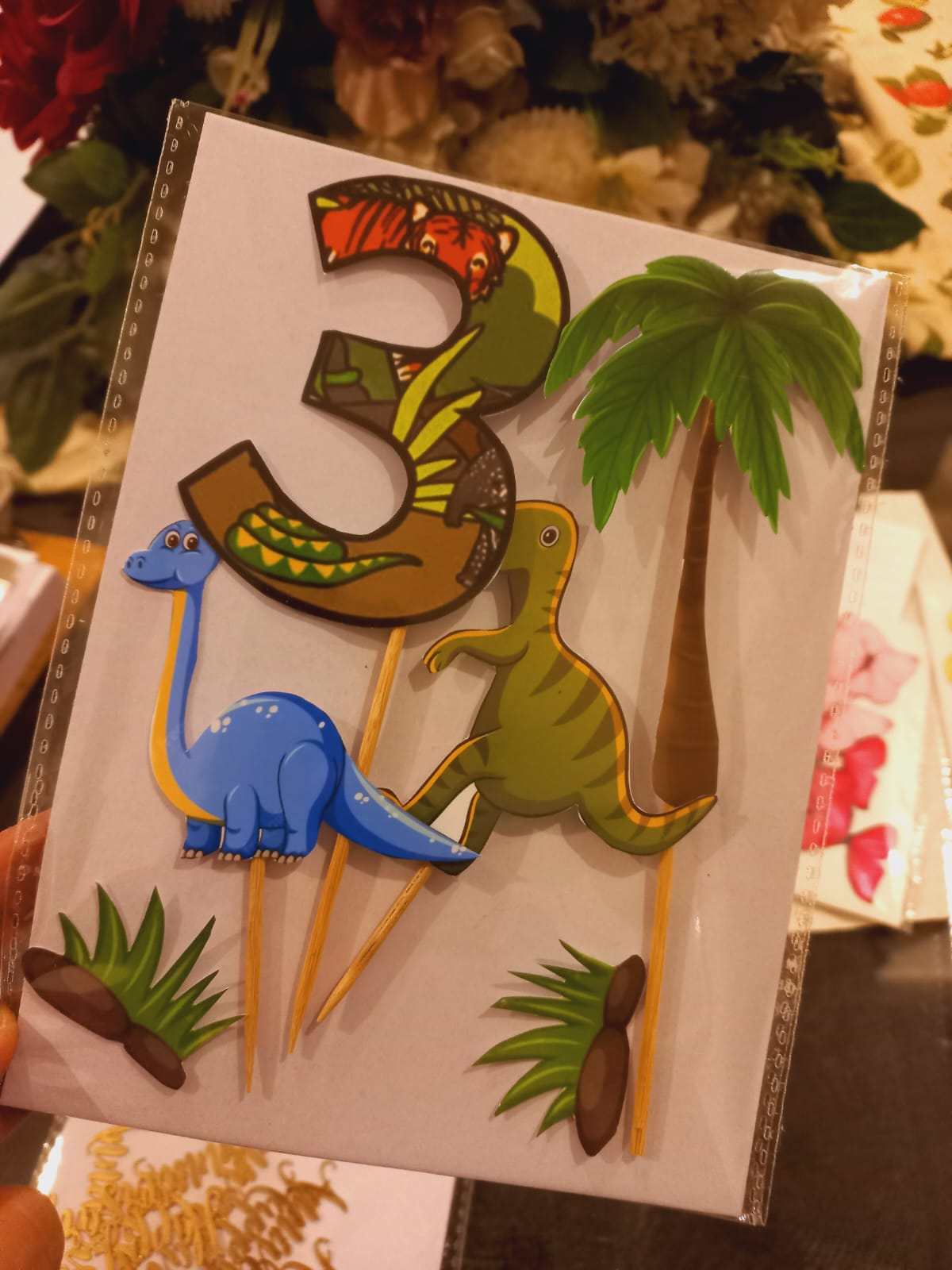 Dinosaur party cake topper perfect for birthday celebrations and themed parties.