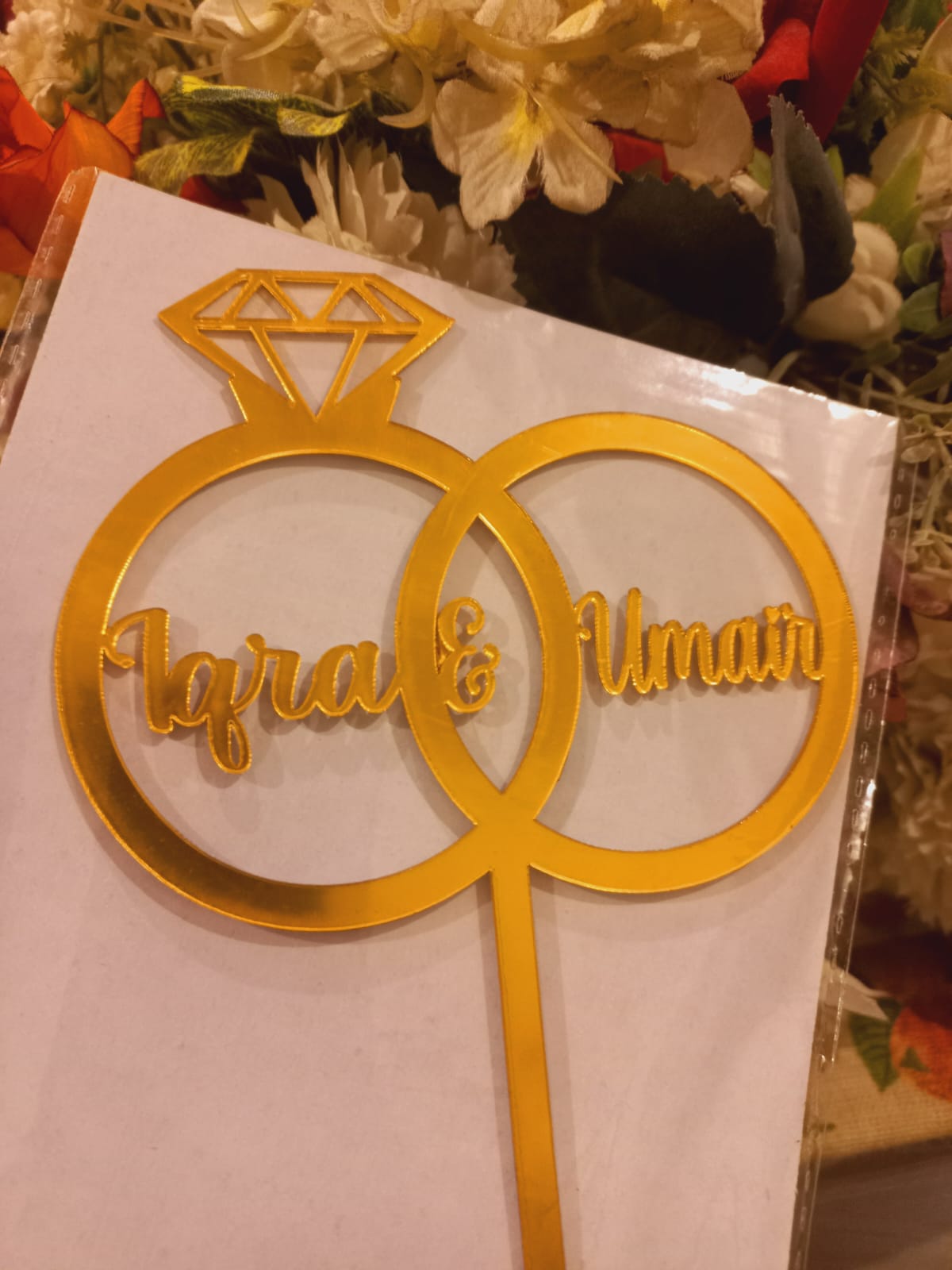 Customized engagement cake topper or acrylic cake topper ideal for wedding decorations.