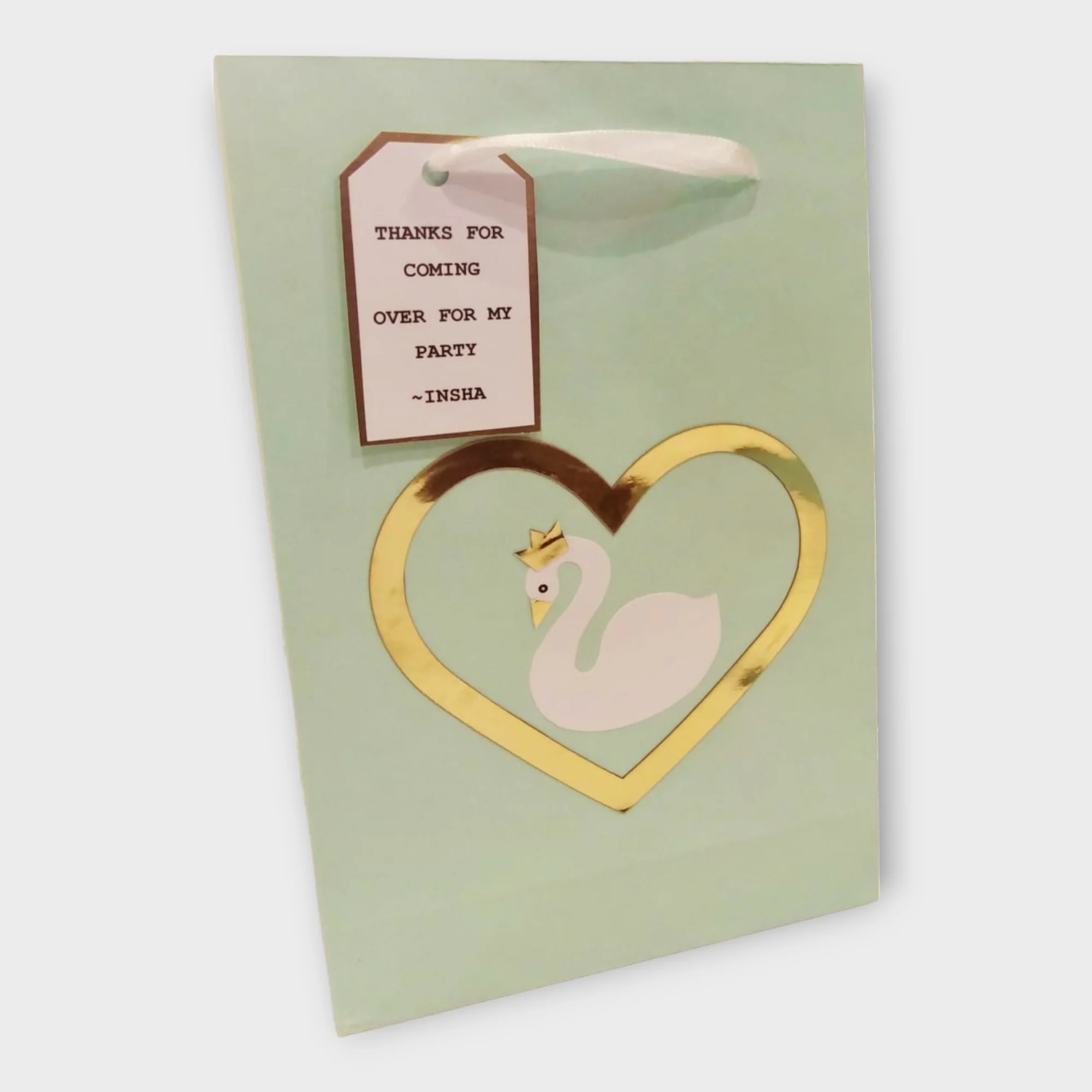 Personalized pastel shade swan-themed goodie bags perfect for elegant and graceful events.