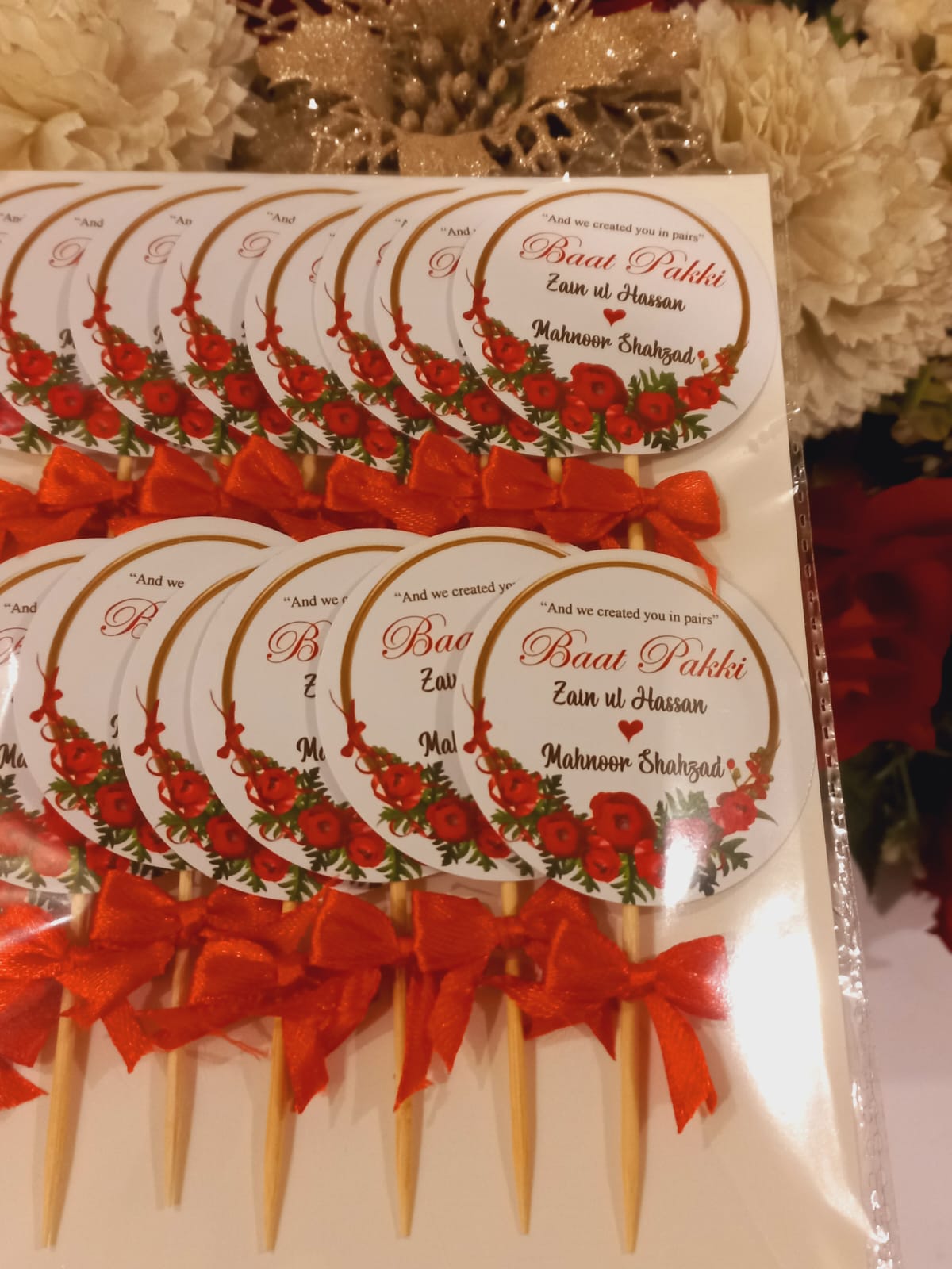 These floral Baat Pakki methai toppers were perfect for the event. Beautifully designed.