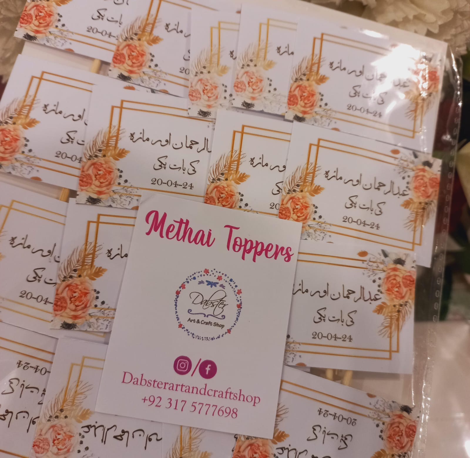 Floral Baat Pakki methai toppers or sweet toppers perfect for wedding festivities.