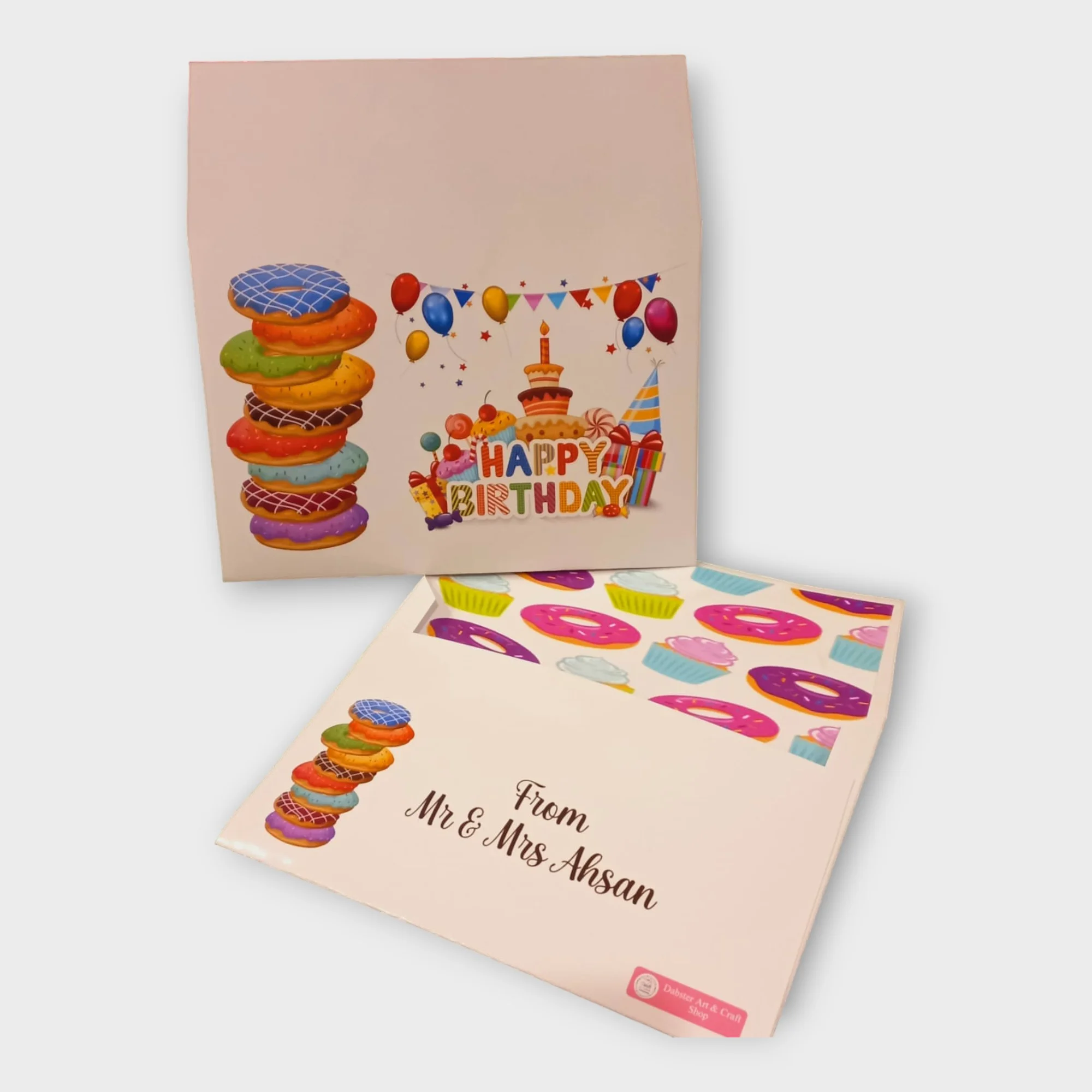 Delicate happy birthday envelope designed for gifting money with a touch of elegance.